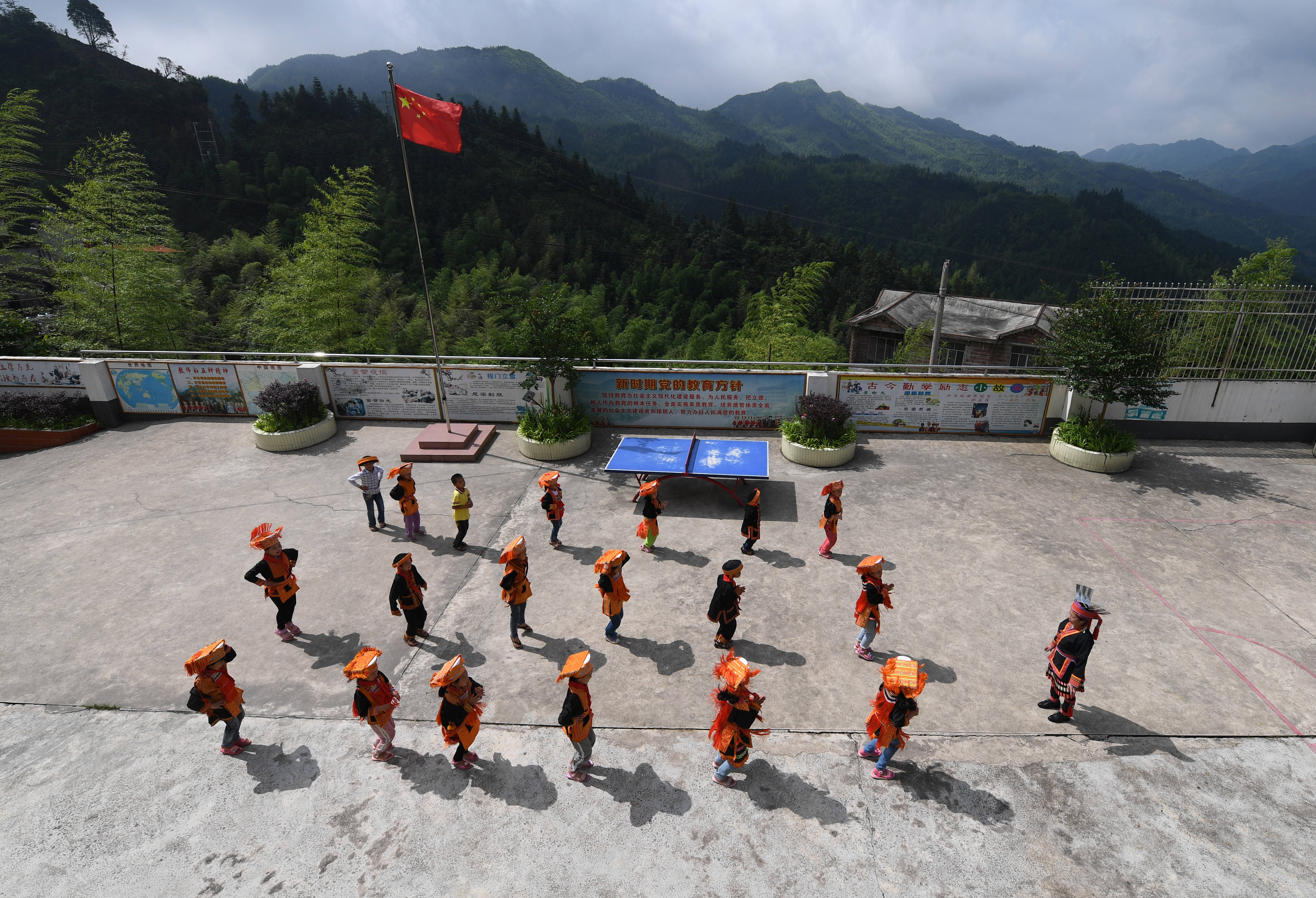五星红旗冉冉升起,迎风飘扬,这是大山学校里最神圣的仪式。
